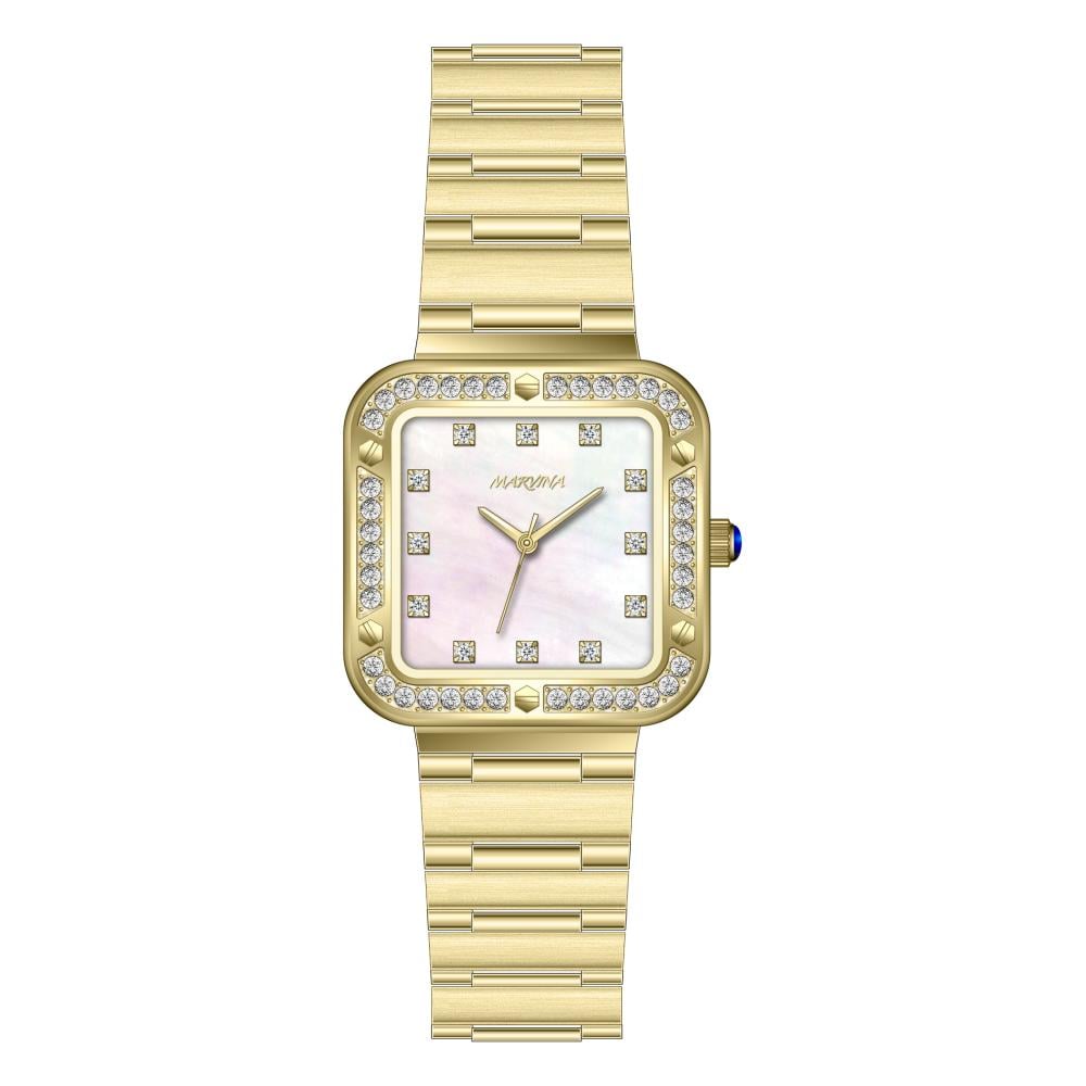 تمتعِ بإطلالة راقية مع ساعة مارفينا الاستيل الذهبية! هذه الساعة الأنيقة المصممة خصيصًا للسيدات تجمع بين جمال التصميم الذهبي اللامع ومتانة الاستيل ، مما يجعلها قطعة فريدة لا غنى عنها في أي مناسبة.