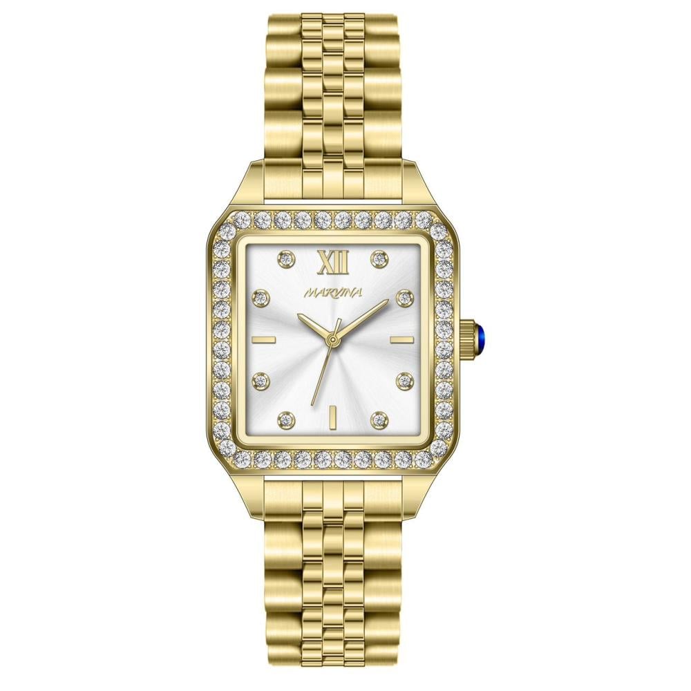 تمتعِ بإطلالة راقية مع ساعة مارفينا الاستيل الذهبية! هذه الساعة الأنيقة المصممة خصيصًا للسيدات تجمع بين جمال التصميم الذهبي اللامع ومتانة الاستيل ، مما يجعلها قطعة فريدة لا غنى عنها في أي مناسبة.