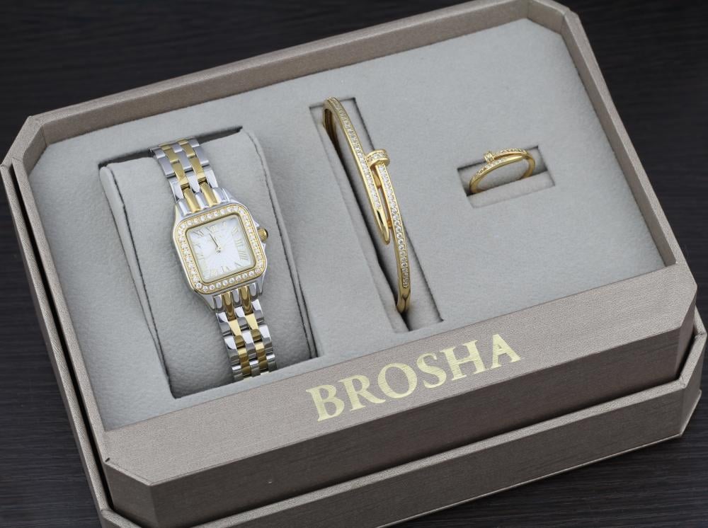 طقم نسائي استيل فصوص زيركزن فضي ذهبي